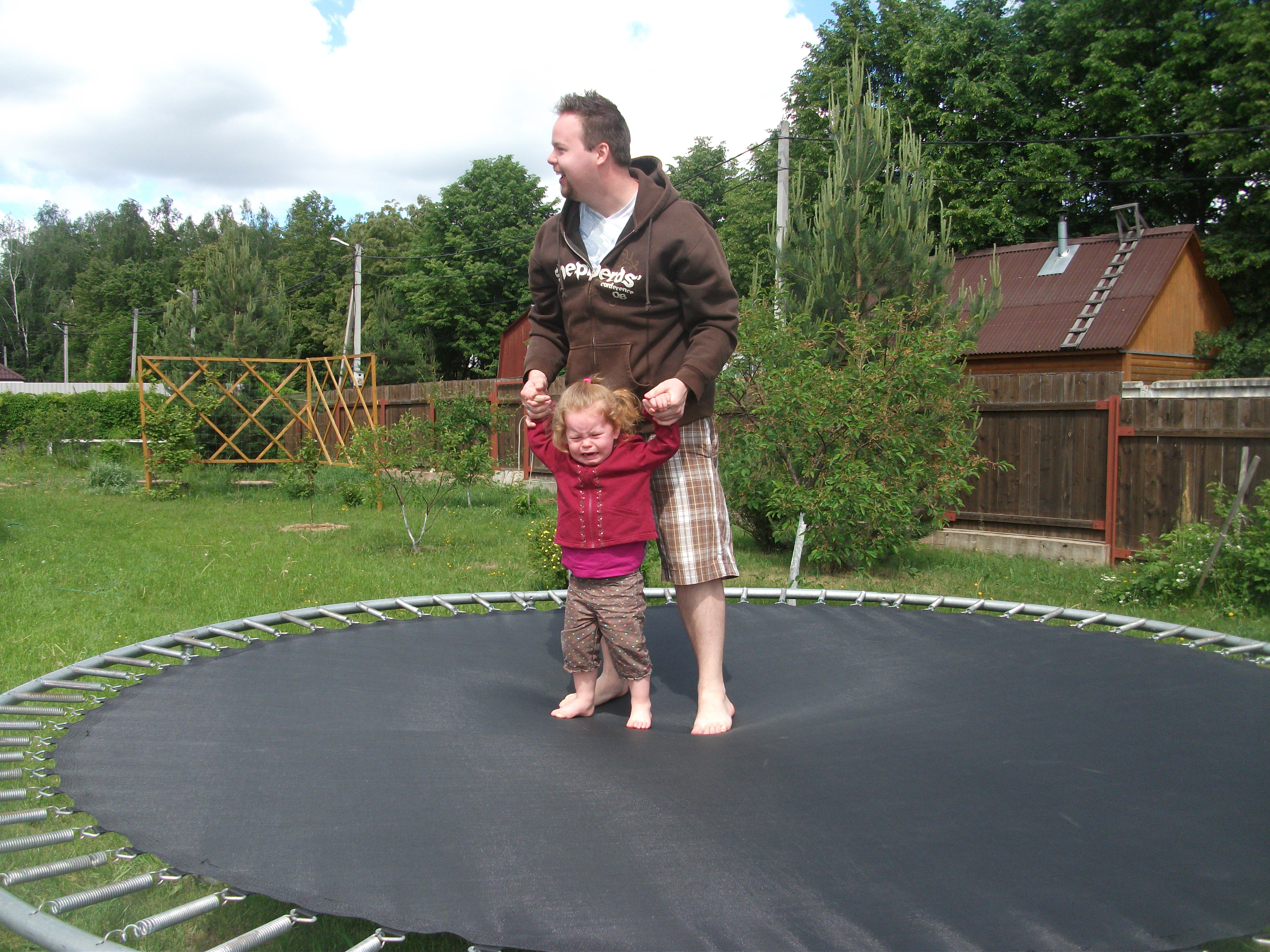 We had fun on the trampoline, but Violet got a little scared. =( Click for a better look
