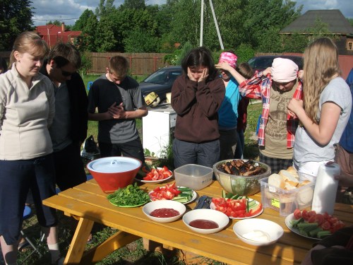 This last weekend we were invited to our friend’s dacha (country house) for the weekend. There ended up being close to twenty people there. We had a great time just relaxing, practicing our Russian, and getting to know people better. Here are some pictures, thanks for checking out our blog!