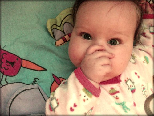Keira likes her thumb a lot these days